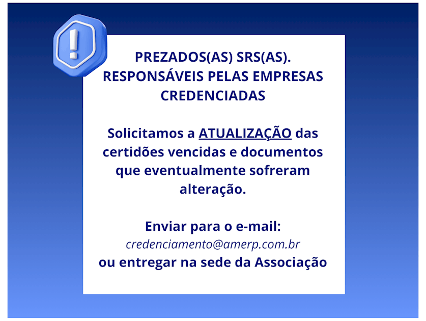 Prezados Srs. Responsáveis pelas empresas credenciadas junto à AMERP,